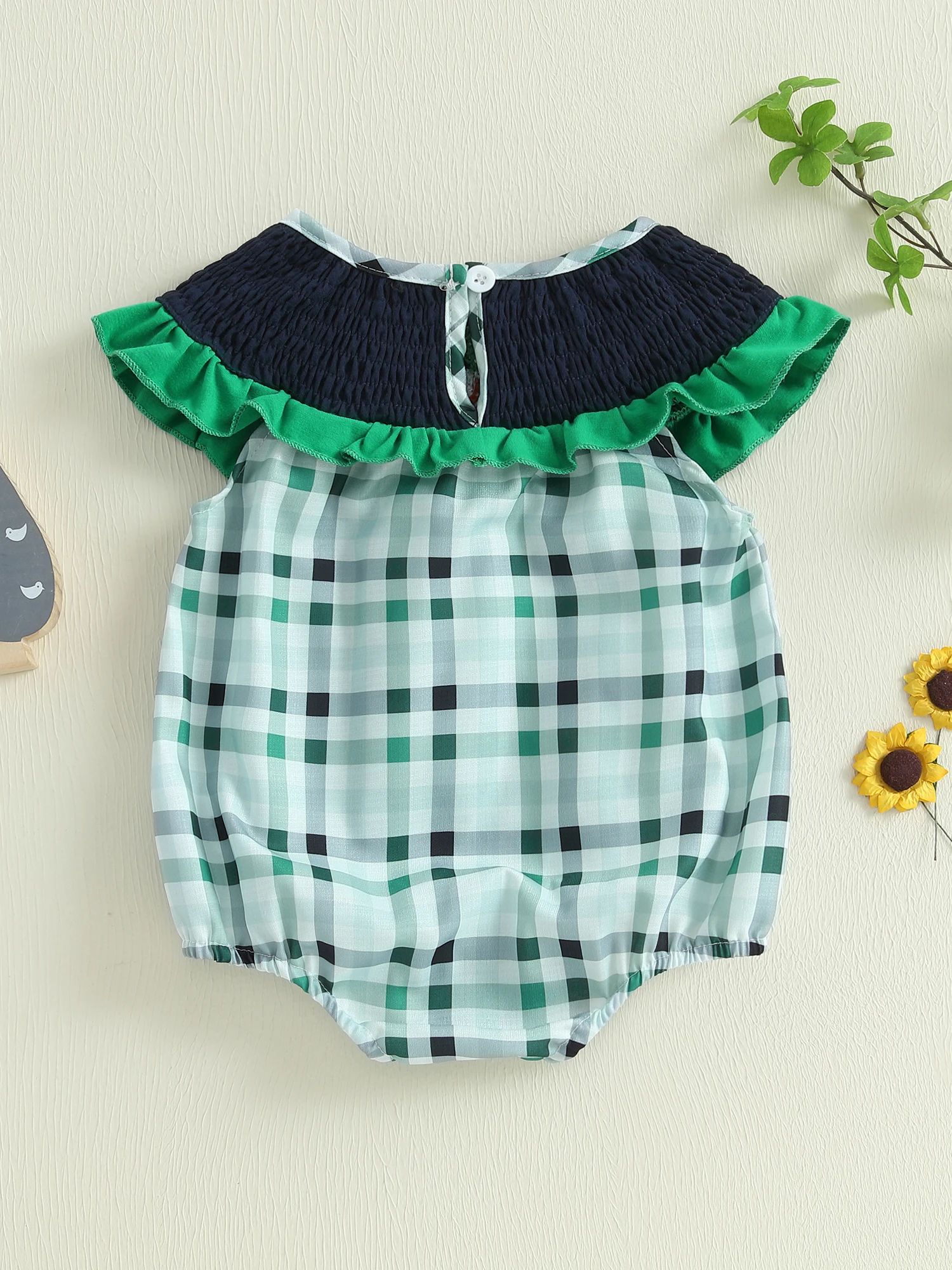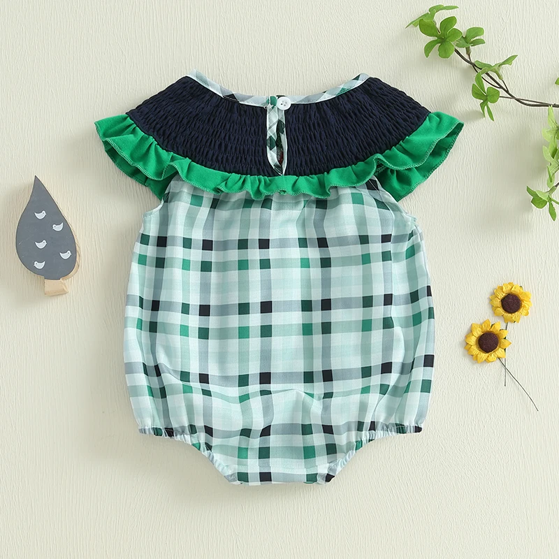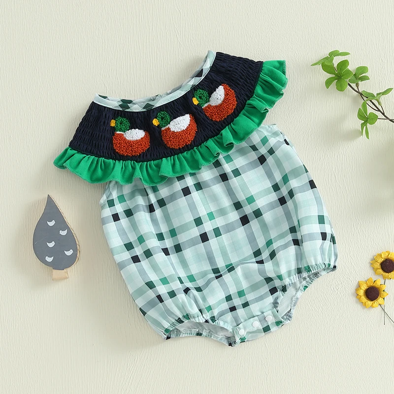 Baby Girls Rompers Duck Embroidery Plaid Sleeveless Jumpsuits Summer Clothes Bodysuits