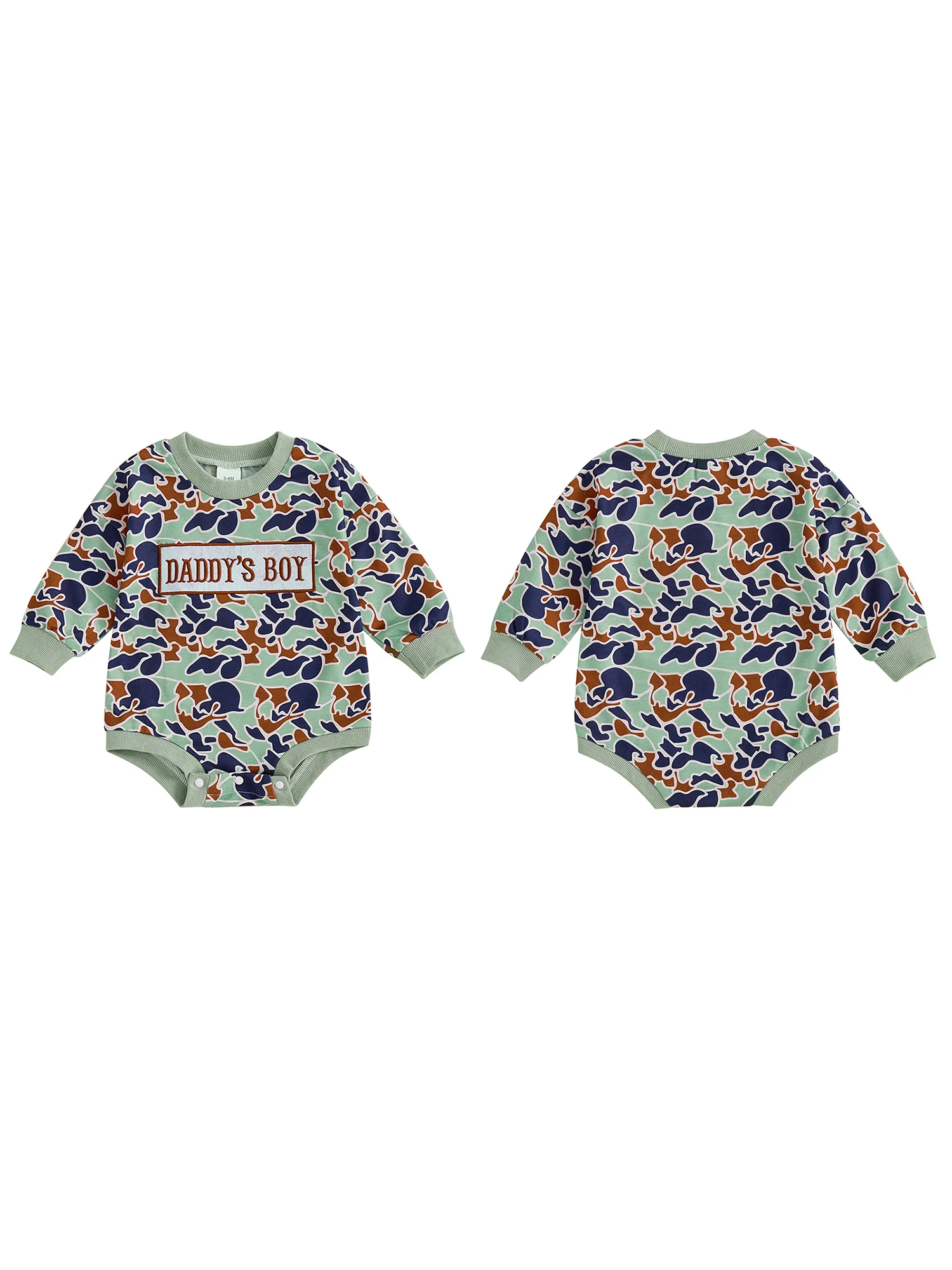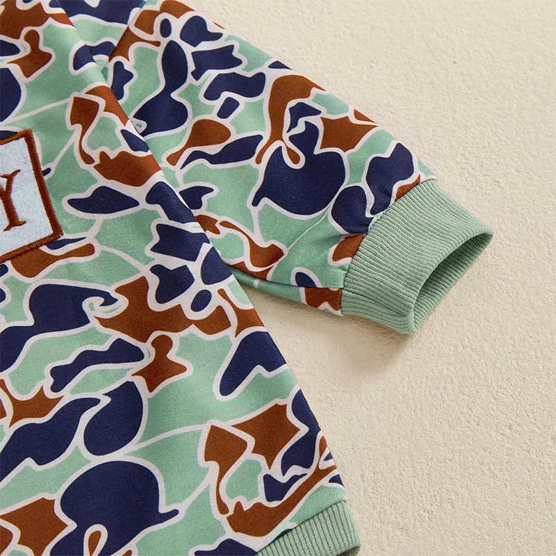 Infant Boys Long Sleeve Crewneck Casual Camouflage Jumpsuit